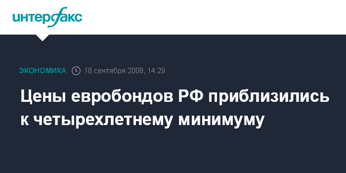 Москва. 18 сентября. INTERFAX.RU - Обвальное падение котировок евробондов РФ, в последние дни наблюдающееся на рынке, получило дальнейшее развитие на фоне возросших опасений относительно ухудшения ситуации в финансовом секторе.