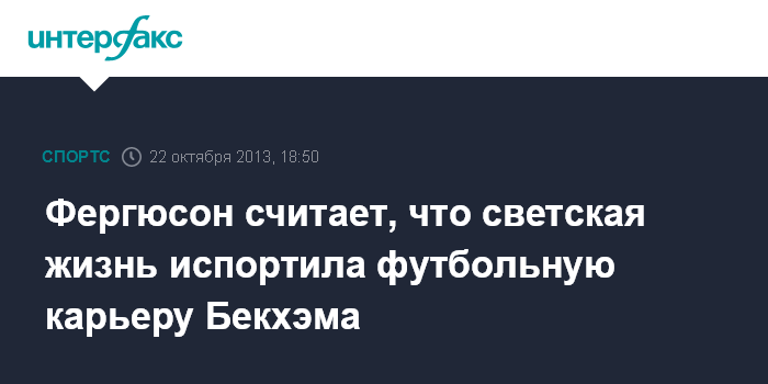 Фергюсон считает, что светская жизнь испортила футбольную карьеру Бекхэма