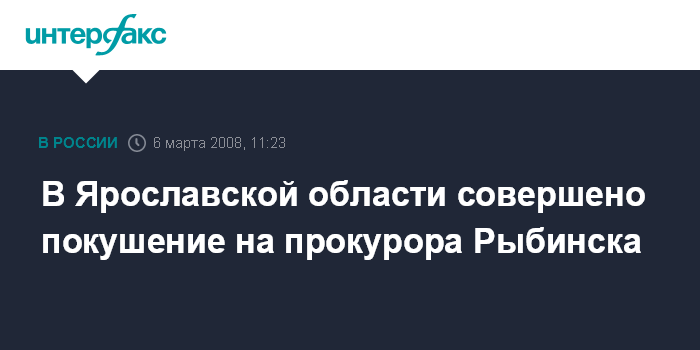 Ярославль. 6 марта. INTERFAX.RU - В Ярославской области в ночь на четверг совершено покушение на прокурора Рыбинска, сообщили "Интерфаксу" в СУ СК при прокуратуре РФ по региону.