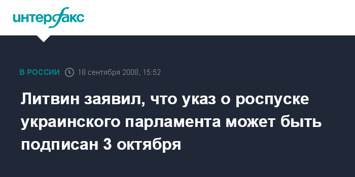 Литвин заявил, что указ о роспуске украинского парламента может быть подписан 3 октября