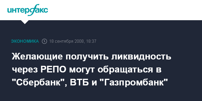 Желающие получить ликвидность через РЕПО могут обращаться в "Сбербанк", ВТБ и "Газпромбанк"