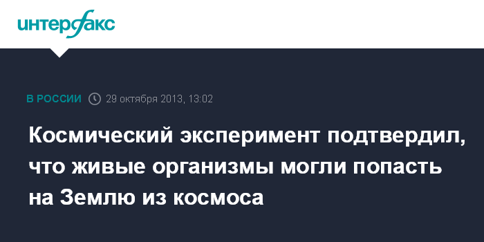 Москва. 29 октября. INTERFAX.RU - Российские ученые с помощью эксперимента, проведенного на борту научного космического аппарата "Бион-М" №1, доказали гипотезу панспермии - занесения жизни на Землю из Космоса.