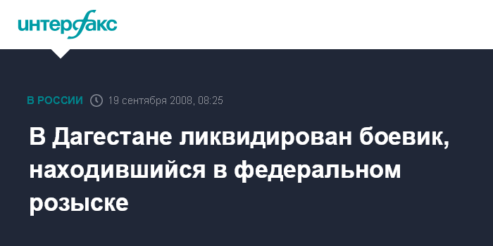 Москва. 19 сентября. INTERFAX.RU - Участник незаконных вооруженных формирований убит при попытке задержания в Хивском районе Дагестана, сообщили "Интерфаксу" в дежурной части Хивского РОВД в четверг.