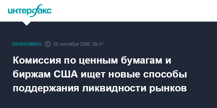 Вашингтон. 19 сентября. INTERFAX.RU - Комиссия по ценным бумагам и биржам США (SEC) обсуждает возможность принятия новых правил для поддержания рыночной ликвидности, заявил глава SEC Кристофер Кокс.
