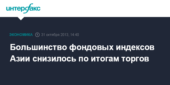 Сводный фондовый индекс АТР MSCI Asia Pacific опустился на 0,7% - до 142,70 пункта. В октябре индикатор прибавил менее 2,7%, его рост за последние два месяца является лучшим с начала 2012 года.