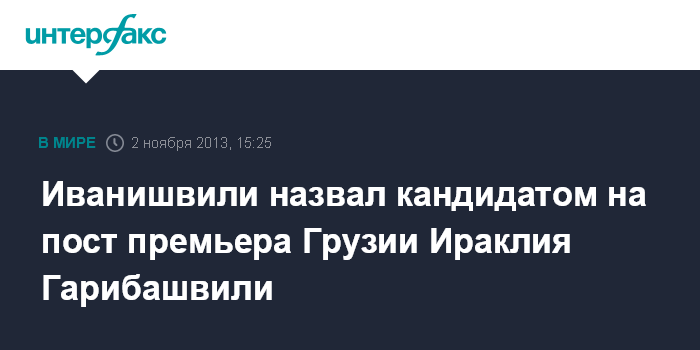 Тбилиси. 2 ноября. INTERFAX.RU - Ираклий Гарибашвили, занимающий должность министра внутренних дел, назван кандидатом на пост премьер-министра Грузии.
