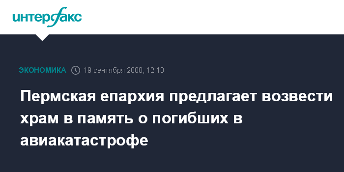 Пермская епархия предлагает возвести храм в память о погибших в авиакатастрофе