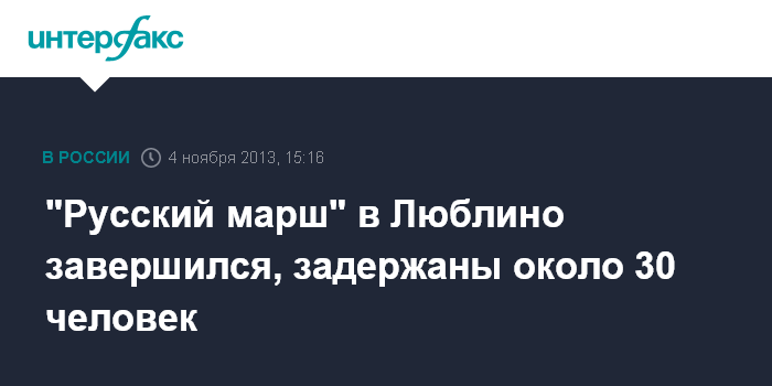 Москва. 4 ноября. INTERFAX.RU - Полиция сообщает о задержании порядка 30 человек на акции националистов в московском районе Люблино. "Шествие в Люблино завершилось. В настоящий момент проходит концерт, на котором присутствует менее 1 тысячи человек", - говорится в сообщении на сайте ГУ МВД РФ по Москве.