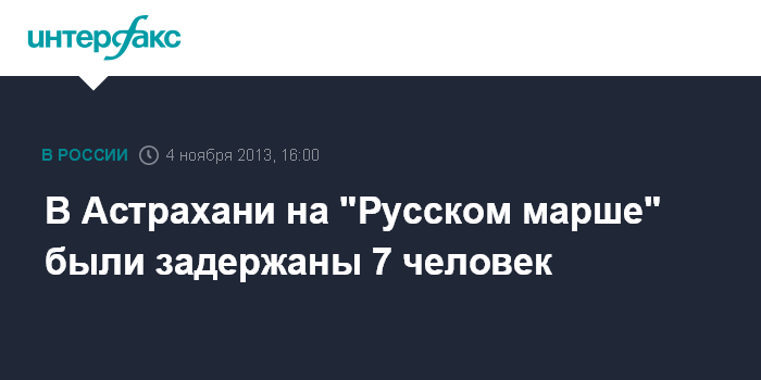 Астрахань. 4 ноября. INTERFAX.RU - В Астрахани согласованный с властями "Русский марш" собрал в понедельник около 300 человек, сообщили агентству "Интерфакс-Юг" в пресс-службе управления МВД по региону.