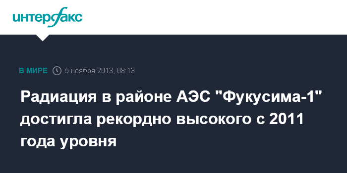 Токио. 5 ноября. INTERFAX.RU - Уровень радиации в морской воде в районе японской аварийной АЭС "Фукусима-1" поднялся до самой высокой с 2011 г. отметки, сообщил журналистам во вторник представитель управляющей станцией компании Tepco.