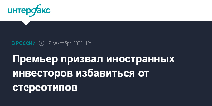 Москва.19 сентября. INTERFAX.RU - Серьезный бизнес, в том числе иностранные инвесторы, должны избавиться от стереотипов и почувствовать качественно новые тенденции в развитии российской экономики, заявил глава правительства РФ Владимир Путин.
