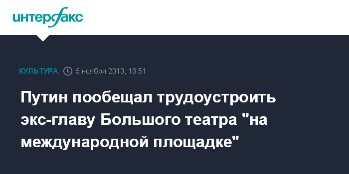 Путин пообещал трудоустроить экс-главу Большого театра "на международной площадке"