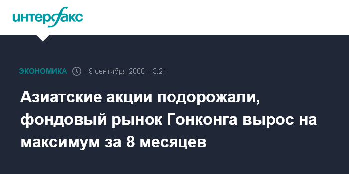 Москва. 19 сентября. INTERFAX.RU - Азиатские акции, прежде всего бумаги финансовых компаний, взлетели в пятницу на новостях из США, где власти готовят серию радикальных мер по поддержке финансовой системы, сообщило агентство Bloomberg.