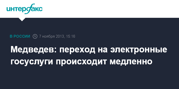 Москва. 7 ноября. INTERFAX.RU - Премьер-министр России Дмитрий Медведев в ходе заседания правкомиссии по использованию информационных технологий для улучшения качества жизни и предоставления госуслуг констатировал, что перевод оказания госуслуг в электронный вид происходит медленно.