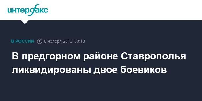 Москва. 8 ноября. INTERFAX.RU - Двое вооруженных лиц уничтожены при задержании в предгорном районе Ставрополья.