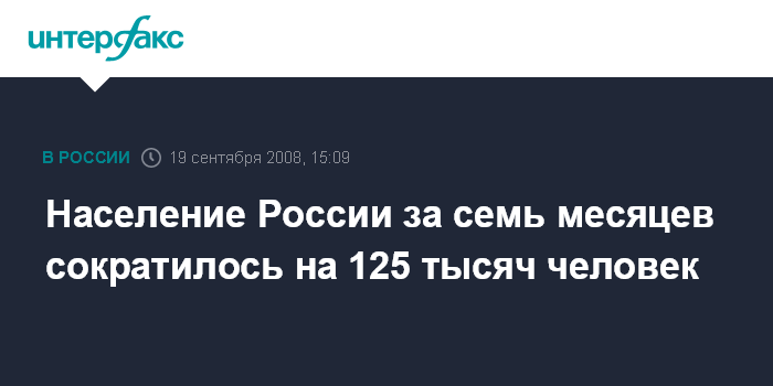 Население России за семь месяцев сократилось на 125 тысяч человек