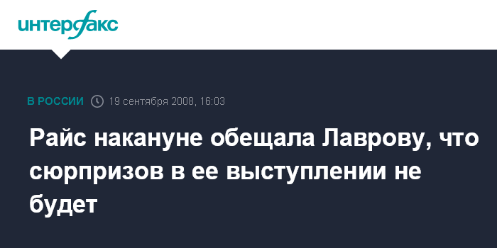 Райс накануне обещала Лаврову, что сюрпризов в ее выступлении не будет