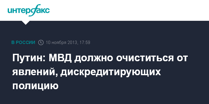 Путин: МВД должно очиститься от явлений, дискредитирующих полицию