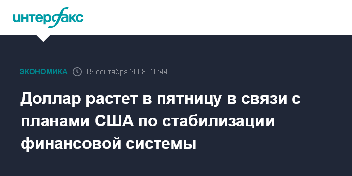 Доллар растет в пятницу в связи с планами США по стабилизации финансовой системы