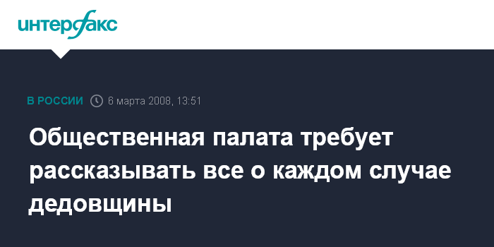Москва. 6 марта. INTERFAX.RU - Общественная палата намерена бороться с дедовщиной в армии, предавая огласке факты неуставных взаимоотношений, заявил журналистам председатель комиссии Общественной палаты по делам ветеранов, военнослужащих и членов их семей Александр Каньшин.