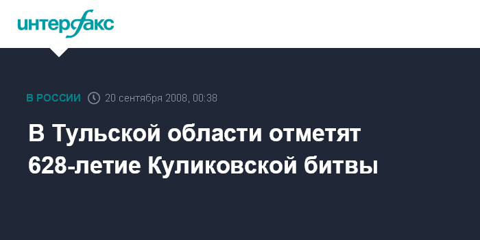 Тула. 20 сентября. ИНТЕРФАКС-ЦЕНТР - Международным военно- историческим фестивалем откроются в субботу в Тульской области празднования по случаю 628-ой годовщины Куликовской битвы.