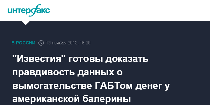 "Известия" готовы доказать правдивость данных о вымогательстве ГАБТом денег у американской балерины