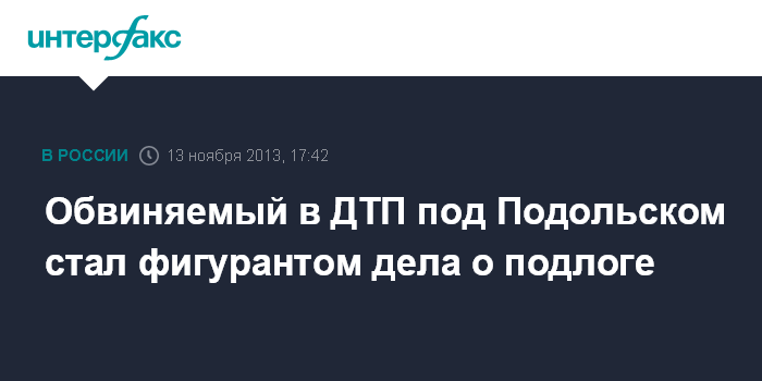 Москва. 13 ноября. INTERFAX.RU - В отношении предполагаемого виновника ДТП в Подмосковье в июле 2013 г., в котором погибли 18 человек, возбуждено уголовное дело по факту использования заведомо подложного документа.