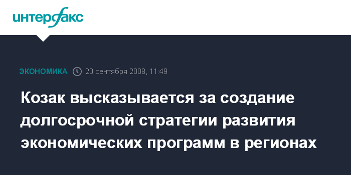 Козак высказывается за создание долгосрочной стратегии развития экономических программ в регионах