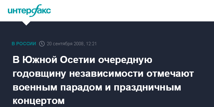 Москва. 20 сентября. INTERFAX.RU - В Южной Осетии в субботу начались торжественные мероприятия, посвященные 18-й годовщине провозглашения независимости республики.