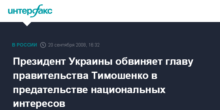 Президент Украины обвиняет главу правительства Тимошенко в предательстве национальных интересов