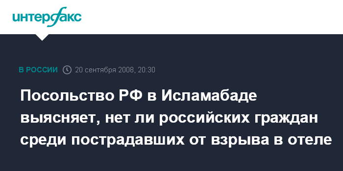 Посольство РФ в Исламабаде выясняет, нет ли российских граждан среди пострадавших от взрыва в отеле