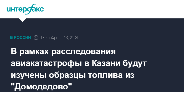 В рамках расследования авиакатастрофы в Казани будут изучены образцы топлива из "Домодедово"