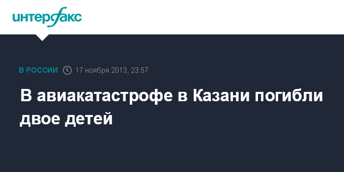 Казань. 17 ноября. INTERFAX.RU - Среди 44 пассажиров самолета, потерпевшего крушение в аэропорту Казани, было двое детей, возраст которых устанавливается, сообщил журналистам первый заместитель руководителя СУ СКР по Татарстану Марат Зарипов. Их возраст сейчас устанавливается.