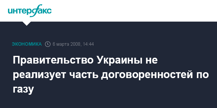 Киев. 6 марта. INTERFAX.RU - Правительство Украины не намерено реализовать договоренности президентов Украины и России от 12 февраля 2008 г. в части создания НАК "Нафтогаз Украины" и ОАО "Газпром" новых совместных предприятий для доставки центральноазиатского природного газа к границе Украины и его реализации на внутреннем украинском рынке, а также оформления российского природного газа, поставленного в страну в январе-феврале 2008 г., сообщила премьер-министр Украины Юлия Тимошенко в письме к главе государства.