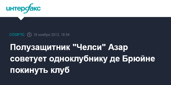 Москва. 18 ноября. INTERFAX.RU - Полузащитник лондонского "Челси" и сборной Бельгии Эден Азар считает, что его партнеру по клубу и национальной команде Кевину де Брюйне стоит уйти из "Челси". Азар полагает, что в другом клубе у де Брюйне было бы больше игрового времени, что особенно важно в преддверии чемпионата мира в Бразилии.