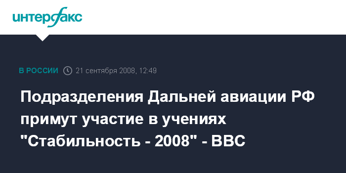 Подразделения Дальней авиации РФ примут участие в учениях "Стабильность - 2008" - ВВС