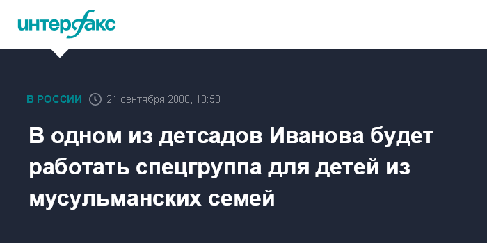 Иваново. 21 сентября. INTERFAX.RU - В ивановском детском саду N170 начался набор в специализированную группу для детей из семей, исповедующих мусульманство, сообщила "Интерфаксу" заведующая дошкольным отделом городского управления образования Наталья Ниткина.