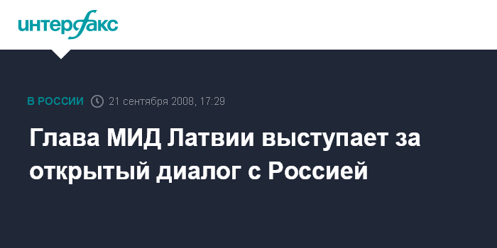 Рига. 21 сентября. INTERFAX.RU - Министр иностранных дел Марис Риекстиньш выступает за открытый и прямой диалог между Латвией и Россией, в том числе по тем вопросам, взгляды на которые у двух стран расходятся.