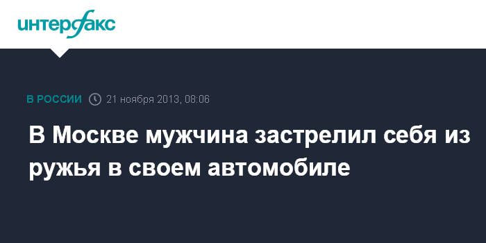 Москва. 21 ноября. INTERFAX.RU - Москвич застрелился из ружья на юго-западе столицы прямо в своей машине, сообщил "Интерфаксу" источник в правоохранительных органах.