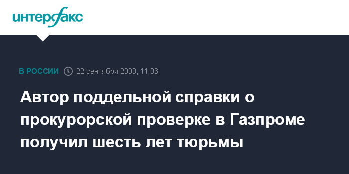 Автор поддельной справки о прокурорской проверке в Газпроме получил шесть лет тюрьмы
