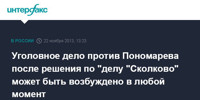 Москва. 22 ноября. INTERFAX.RU - Вступившее в законную силу решение суда по спору между фондом "Сколково" и депутатом Госдумы Ильей Пономаревым является веским основанием для возбуждения уголовного дела в отношении парламентария, заявил "Интерфаксу" источник, знакомый с ситуацией.