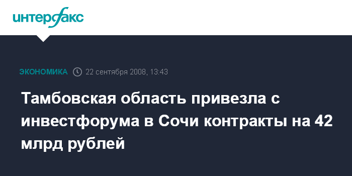 Тамбовская область привезла с инвестфорума в Сочи контракты на 42 млрд рублей