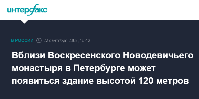 Вблизи Воскресенского Hоводевичьего монастыря в Петербурге может появиться здание высотой 120 метров