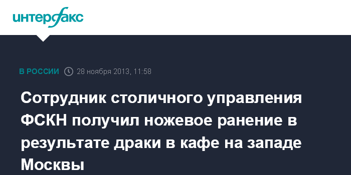 Сотрудник столичного управления ФСКН получил ножевое ранение в результате драки в кафе на западе Москвы