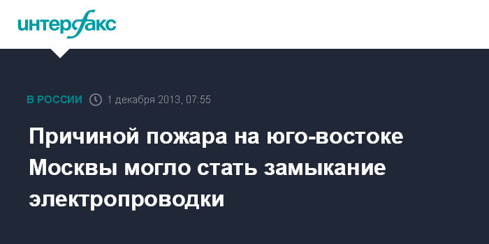 Москва. 1 декабря. ИНТЕРФАКС - Неисправность проводки, по предварительным данным, стала причиной крупного пожара на юго-востоке столицы, где погибли два сотрудника МЧС, сообщил "Интерфаксу" источник в правоохранительных органах.