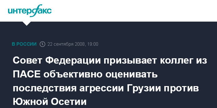 Совет Федерации призывает коллег из ПАСЕ объективно оценивать последствия агрессии Грузии против Южной Осетии