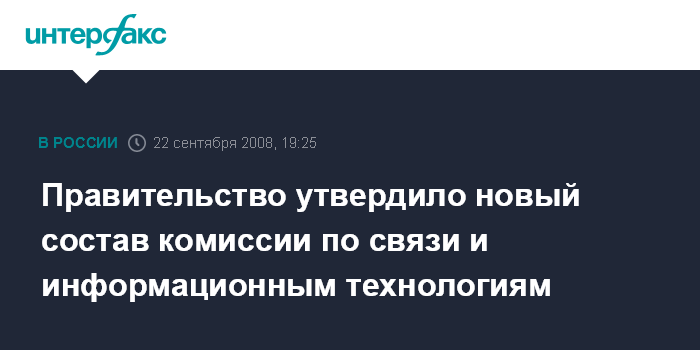 Москва. 22 сентября. INTERFAX.RU - Председатель правительства РФ Владимир Путин утвердил новый состав правительственной комиссии по федеральной связи и информационным технологиям, которую возглавил министр связи и массовых коммуникаций РФ Игорь Щеголев.