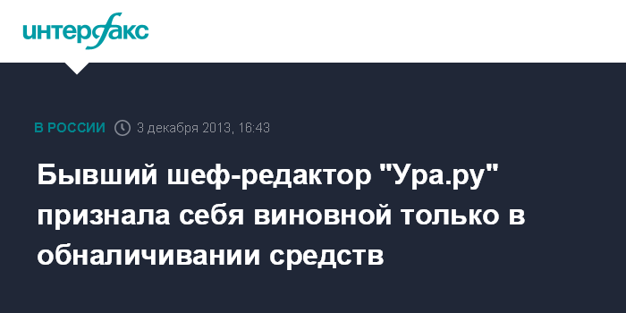 Бывший шеф-редактор "Ура.ру" признала себя виновной только в обналичивании средств