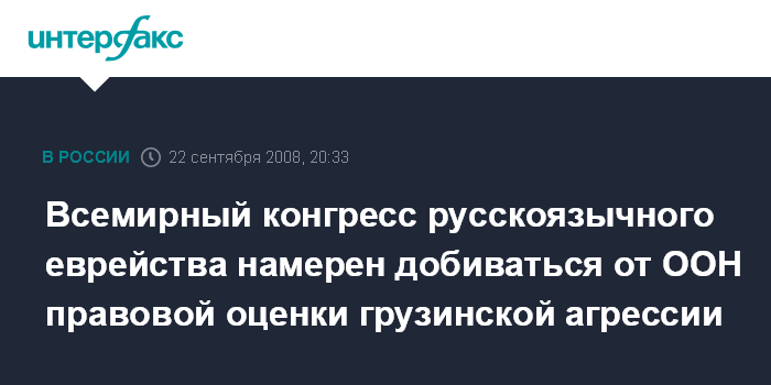 Всемирный конгресс русскоязычного еврейства намерен добиваться от ООН правовой оценки грузинской агрессии