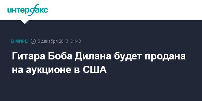 Гитара Боба Дилана будет продана на аукционе в США